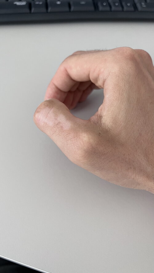 Natürlich habe ich das Gel auch an mir selbst getestet. Als ich sah, wie empfindliche Stellen innerhalb von nur drei Monaten repigmentierten, wusste ich, dass wir auf dem richtigen Weg waren. Ich habe es auch an den Fingern versucht, aber dort gab es nur eine teilweise Besserung. Sehen Sie selbst: